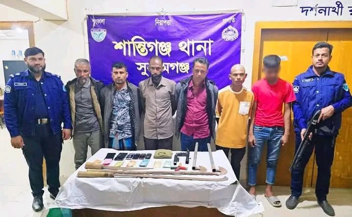 শান্তিগঞ্জে আন্তঃজেলা ডাকাতদলের সর্দারসহ ৬ ডাকাত গ্রেফতার
