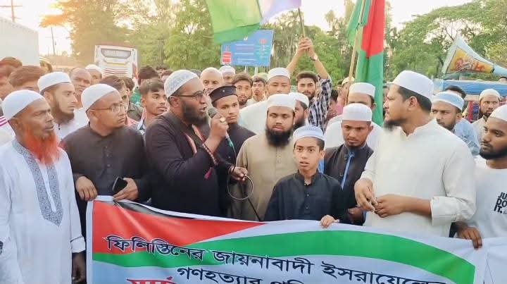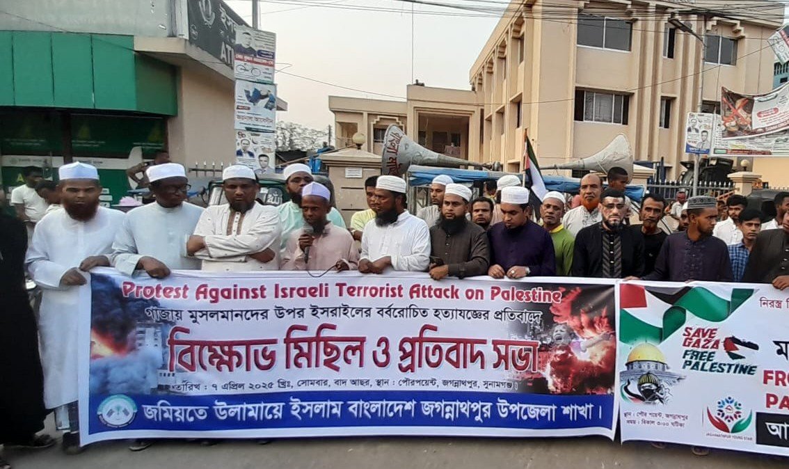 জগন্নাথপুরে ইসরায়েলী আগ্রাসনের বিরুদ্ধে জমিয়তের বিক্ষোভ মিছিল ও প্রতিবাদ সভা