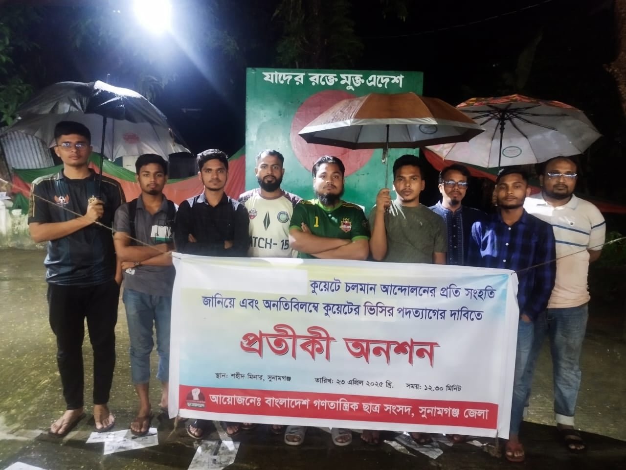 সুনামগঞ্জে গণতান্ত্রিক ছাত্র সংসদের উদ্যোগে সন্ধ্যারাত পর্যন্ত প্রতীকী অনশন পালিত