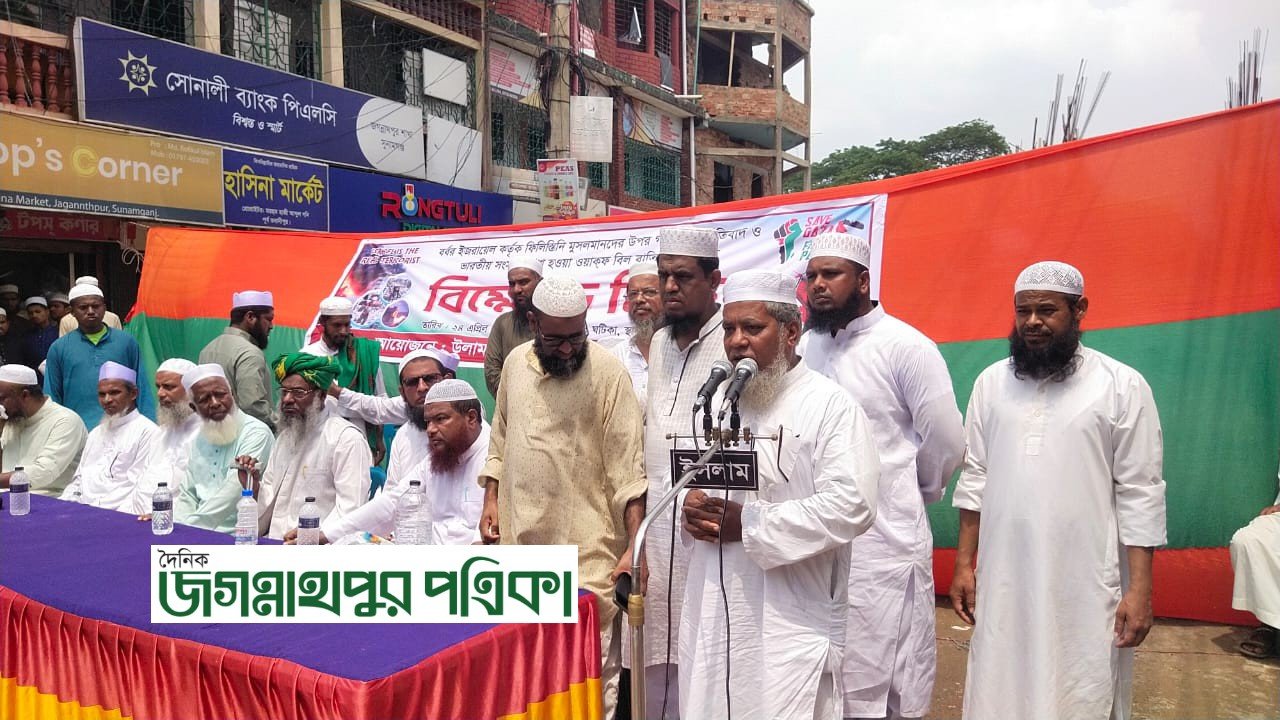 জগন্নাথপুরে ফিলিস্তিনে গণহত্যা ও ভারতে ওয়াকফ বিল বাতিলের দাবিতে বিক্ষোভ সমাবেশ