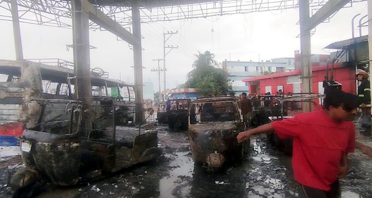 নবীগঞ্জে গ্যাস দেয়ার সময় পাম্পে আগুন, পুড়ে ছাই ১১টি গাড়ি