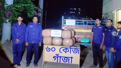 নিজস্ব প্রতিবেদক :: সুনামগঞ্জের শান্তিগঞ্জ থানা পুলিশের বিশেষ অভিযানে ৬০ (ষাট) কেজি গাঁজা উদ্ধার ও গাঁজা পরিবহনে ব্যবহৃত একটি পিকআপ গাড়ী আটক করা হয়েছে। সোমবার (২৪ নভেম্বর) রাত সাড়ে ১২ টায় উপজেলার জয়কলস ইউনিয়নের সদরপুর এলাকার সিলেট-সুনামগঞ্জ সড়কের সদরপুর ব্রীজের সামন থেকে একটি পিকআপ গাড়ি থেকে ৬০ কেজি গাজা উদ্ধার করে পুলিশ। পুলিশ সূত্রে জানা যায়, সুনামগঞ্জ জেলা পুলিশ সুপার তোফায়েল আহাম্মেদের দিক নির্দেশনায়, সহকারী পুলিশ সুপার, জগন্নাথপুর সার্কেলের তত্ত্বাবধানে শান্তিগঞ্জ থানার অফিসার ইনচার্জ মো. আব্দুল আহাদের নেতৃত্বে এসআই (নিরস্ত্র) ইসমাইল মিয়া, এএসআই (নিরস্ত্র) রুবেল আহমদ সঙ্গীয় অফিসার ফোর্সসহ বিশেষ অভিযান পরিচালনা করা হয়। সোমবার রাত সাড়ে ১২টার সময় শান্তিগঞ্জ থানাধীন জয়কলস ইউনিয়নের সদরপুর ব্রীজ সংলগ্ন সিলেট- সুনামগঞ্জ আঞ্চলিক মহাসড়কে একটি পিকআপ গাড়ীকে সংকেত দিয়ে থামালে উক্ত গাড়ীর চালকসহ অজ্ঞাতনামা ৩/৪ জন রাস্তায় গাড়ী রেখে দৌড়ে পালিয়ে যায়। পিকআপ গাড়ী তল্লাশী করে গাড়ীতে থাকা ০৪ (চার) টি চটের বস্তায় রক্ষিত ১২ (বারো) টি ০৫ কেজি ওজনের বড় গাঁজার পোটলায় সর্বমোট ৬০ (ষাট) কেজি গাঁজা উদ্ধার করে পুলিশ। এ সময় গাঁজা পরিবহনে পিকআপ গাড়ী (রেজি: নং-সিলেট মেট্রো-ন-১১-১০২২) উদ্ধার পূর্বক জব্দ করে পুলিশ।