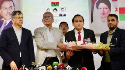 ডেস্ক রিপোর্ট :: সাবেক অর্থমন্ত্রী শাহ এ এম এস কিবরিয়ার ছেলে রেজা কিবরিয়া আনুষ্ঠানিকভাবে বিএনপিতে যোগদান করেছেন। সোমবার (১ ডিসেম্বর) সকালে রাজধানীর গুলশানে বিএনপি চেয়ারপারসনের কার্যালয়ে নতুন রাজনৈতিক পরিচয় প্রকাশের মাধ্যমে তিনি দলের সদস্য হিসেবে আত্মপ্রকাশ করেন। এসময় দলের মহাসচিব মির্জা ফখরুল ইসলাম আলমগীর ফুল দিয়ে তাকে বরণ করেন। রেজা কিবরিয়া বলেন, ‘বিএনপিতে যোগ দিতে পেরে আমি গর্বিত। আমি আজকে আনুষ্ঠানিকভাবে বিএনপিতে যোগদান করেছি।’ মির্জা ফখরুল জানান, ‘আমরা অত্যন্ত গর্বিত যে রেজা কিবরিয়া বিএনপিতে যোগ দিয়েছেন। আমি আমাদের দলের চেয়ারপারসন খালেদা জিয়া এবং ভারপ্রাপ্ত চেয়ারম্যান তারেক রহমানের পক্ষ থেকে তাকে অভিনন্দন জানাই। তাকে আমরা স্বাগত জানাই।’ তিনি আরও বলেন, বিএনপির ৩১ দফার আলোকে রেজা কিবরিয়া দেশের গঠন ও উন্নয়নে গুরুত্বপূর্ণ ভূমিকা রাখতে পারবেন।
