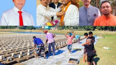 নিজস্ব প্রতিবেদক :: সুনামগঞ্জ জেলার শান্তিগঞ্জ উপজেলার পাথারিয়া ইউনিয়নের গনিগঞ্জ তেহকিয়া-শিমুলবাক ইউনিয়নের শিমুলবাক গ্রাম পর্যন্ত ৯কোটি ৬৬ লক্ষ টাকা ব্যয়ে ২ কিলো ৫০মিটার মাটি ও আরসিসি ঢালাই রাস্তার কাজে ১ কোটি টাকা চাঁদা দাবি করার অভিযোগ উঠেছে শিমুলবাক ইউনিয়ন পরিষদের চেয়াম্যান ও উপজেলা আওয়ামী লীগের সহ সভাপতি শাহিনুর রহমান শাহিনের বিরুদ্ধে। শান্তিগঞ্জ উপজেলা প্রকৌশল (এলজিইডি) অধিদপ্তর সূত্রে জানা যায়, ২০২৩-২০২৪ অর্থ বছরে উপজেলার পাথারিয়া ইউনিয়নের গনিগঞ্জ তেহকিয়া-শিমুলবাক ইউনিয়নের শিমুলবাক গ্রাম পর্যন্ত ৯ কোটি ৬৬ লক্ষ টাকা ব্যয়ে ২ কিলো ৫০মিটার রাস্তার মাটি, প্রটেকশন ওয়াল ও আরসিসি ঢালাই রাস্তার কাজ পায় ভৈরবের ঠিকাদারী প্রতিষ্ঠান মেসার্স মমিনুল হক এম এ ওয়াহেদ জেবি। চুক্তি অনুযায়ী এই সড়কের কাজ চলতি বছরের নভেম্বর মাসের ১৯ তারিখ শেষ হওয়ার কথা থাকলেও বিভিন্ন বাঁধা ও প্রতিকূল পরিবেশের কারণে সম্পন্ন করা যায়নি। সরেজমিনে গিয়ে দেখা যায়, পাথারিয়া ইউনিয়নের তেহকিয়া গ্রামের অংশে ঠিকাদারী প্রতিষ্ঠানের লোকজন কাজ করছেন। রাস্তার প্রটেকশন ওয়াল ও সিসি ব্লক নিমার্ণ করছেন। মাটির কাজ প্রায় ৮০ ভাগ শেষ করে এখন প্রটেকশন ওয়াল ও কালভার্ট নির্মাণ কাজে ব্যস্ত রয়েছেন শ্রমিকরা। পাথর ও বালি ওয়ার্ক অর্ডার অনুযায়ী ভালো মানের সামগ্রী ব্যবহার হচ্ছে কাজে। তেহকিয়া গ্রামের হাসান মিয়া, সোহান মিয়া, আব্দুল আহাদ ও সোহেল আহমদ জানান, আমাদের এলাকার এই কাজটি খুবই জনগুরুত্বপূর্ণ হওয়ায় গ্রামের মানুষ মিলে ঠিকাদারের কাজকে তদারকি করে আসছি। তারা খুব ভালো ভাবে এই রাস্তার কাজ করে যাচ্ছেন। এই প্রকল্পে কোন অনিয়ম হচ্ছে না। প্রতিদিন আমরা এই কাজ তদারকি করছি। তারা আরো বলেন, শিমুলবাক ইউনিয়ন পরিষদের চেয়ারম্যান ও উপজেলা আওয়ামী লীগের সহ সভাপতি শাহিনুর রহমান শাহিন এই কাজটি সম্পন্ন করতে দিচ্ছেন না। প্রতিদিন বাঁধা আপত্তি করছেন। তিনি নাকি এই প্রকল্পটি পাশ করাতে ১ কোটি টাকা খরচ করেছেন। তাই ঠিকাদারের লোকজনের কাছে তিনি ১ কোটি টাকা দাবি করছেন। আমরা এর প্রতিবাদ করলে তিনি কাজের সাইটে না এসে বিভিন্ন স্থানে থেকে বিভিন্ন অফিসারকে ফোন করে কাজ বন্ধ রাখার জন্য বলছেন।