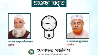খেলাফত মজলিস নেতৃদ্বয় দেশবাসীর উদ্দেশ্যে আরো বলেন, সকল সংকটের স্থায়ী উত্তরণে প্রয়োজন খেলাফত ভিত্তিক একটি ইসলামী রাষ্ট্রব্যবস্থা। যেখানে জনগণ হচ্ছে আল্লাহর খলিফা বা প্রতিনিধি। যেখানে মানুষ মানুষের উপর