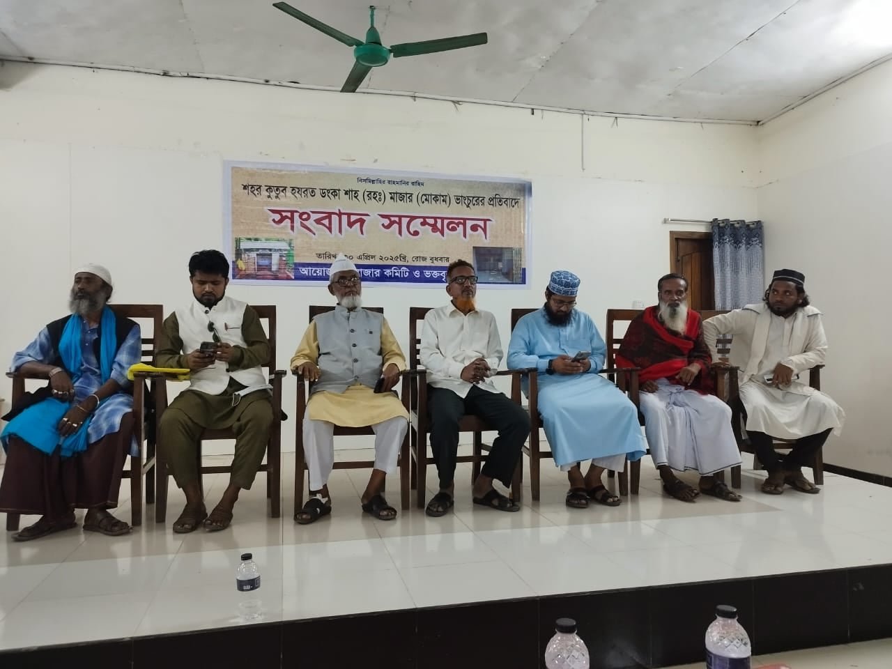 সুনামগঞ্জে হযরত ডংকাশাহ (রহ:) এর মাজার পুনরায় স্থাপন ও ভাংচুরকারীদের গ্রেফতারের দাবীতে সংবাদ সম্মেলন