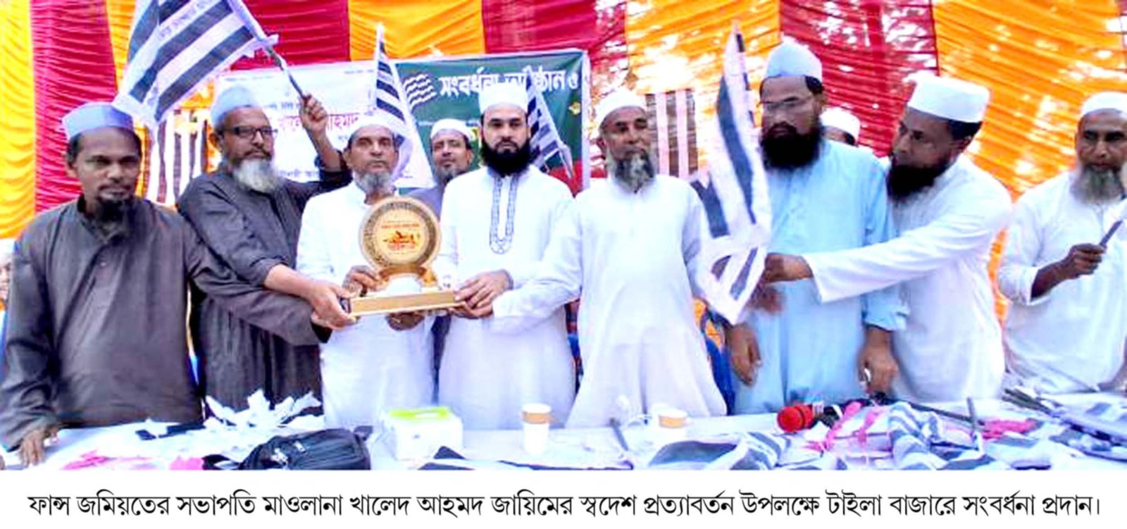 শান্তিগঞ্জে ফ্রান্স জমিয়তের সভাপতি খালেদ আহমদ জায়িমকে টাইলাবাজারে সংবর্ধনা প্রদান