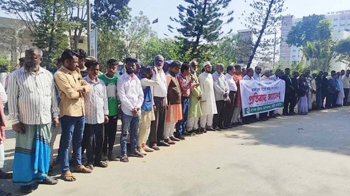 সুনামগঞ্জে বাঁধের কাজ শেষ না হওয়ায় প্রতিবাদ সমাবেশ