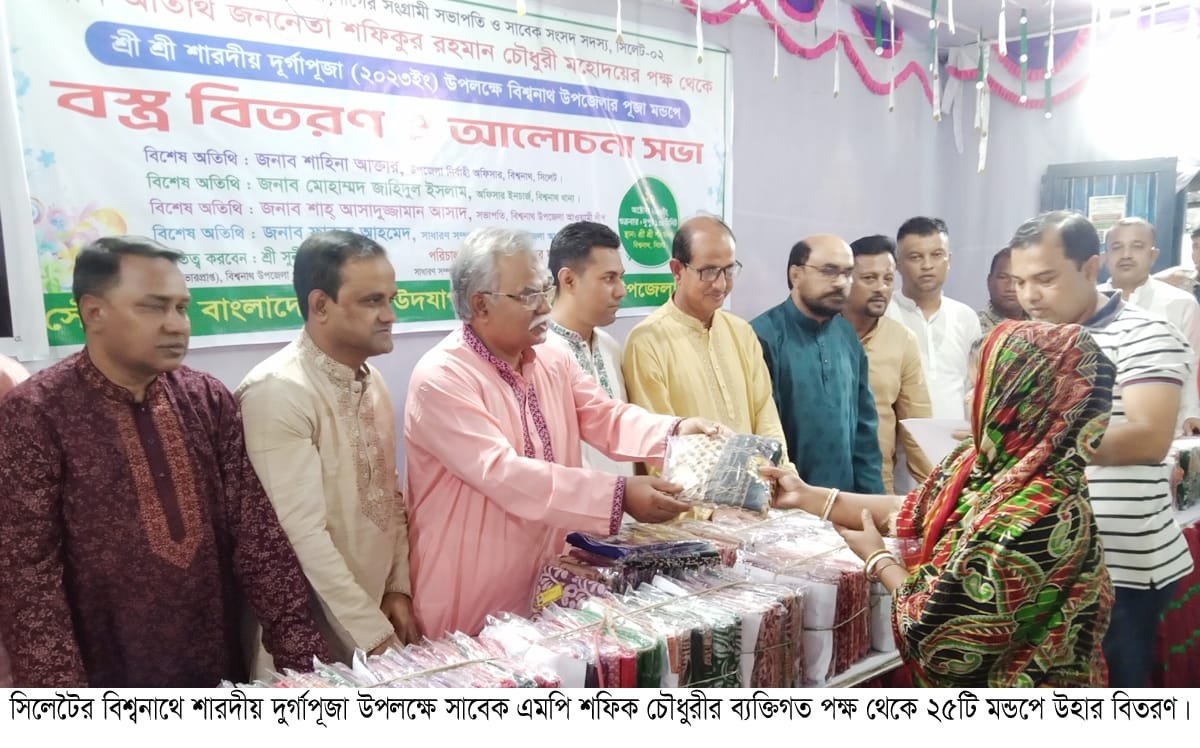 শারদীয় দূর্গোৎসবে বিশ্বনাথে শফিক চৌধুরীর বস্ত্র বিতরণ