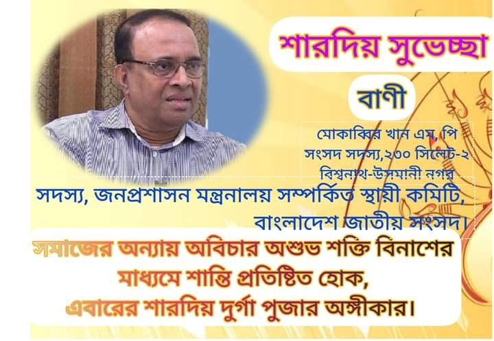 শারদীয় দুর্গাপূজার শুভেচ্ছা জানালেন এমপি মোকাব্বির খান