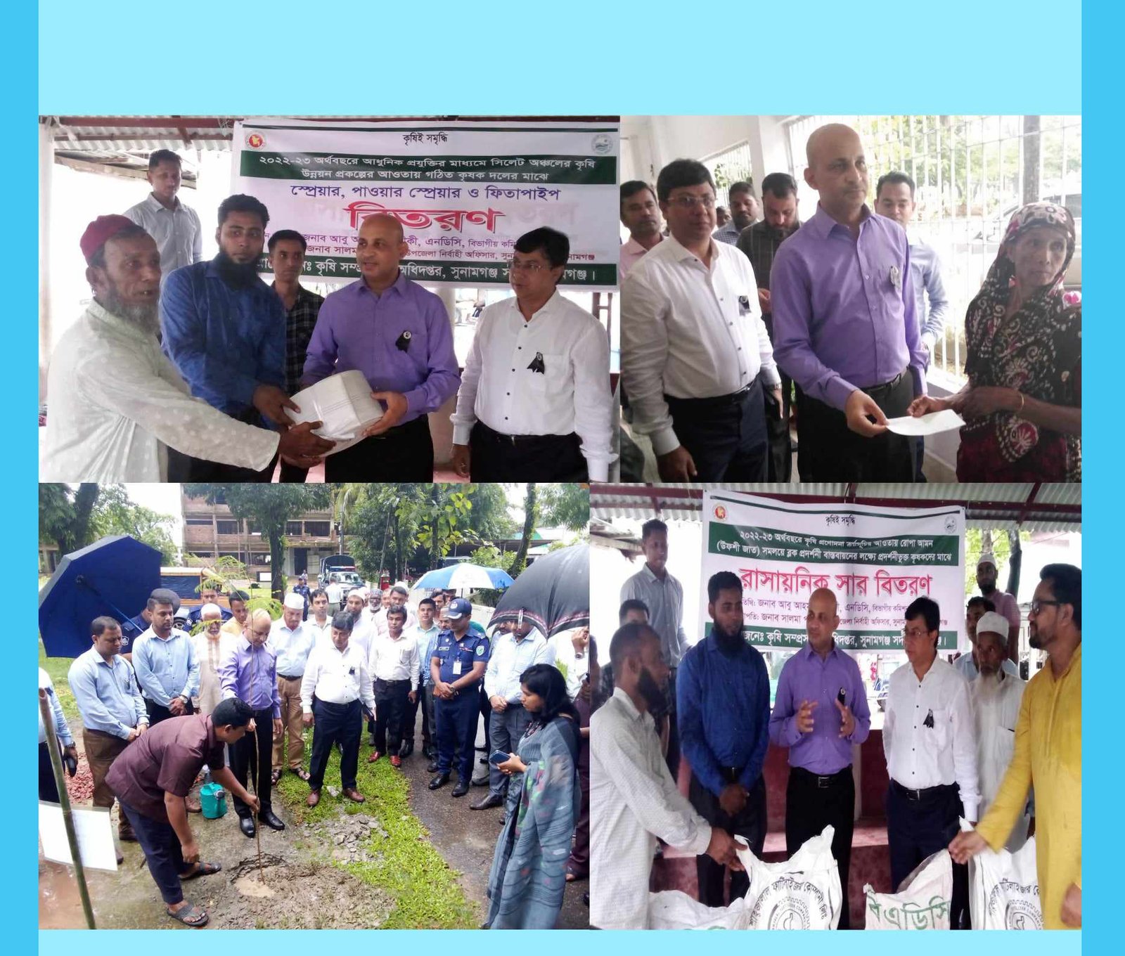 সুনামগঞ্জে কৃষকদের মাঝে সার ও পাওয়ার স্প্রেয়ার বিতরণ করলেন বিভাগীয় কমিশনার