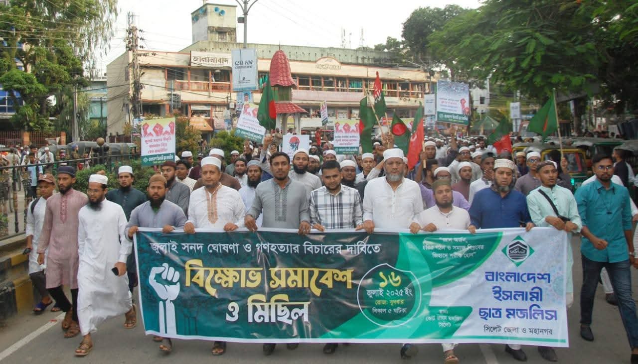 ডেস্ক রিপোর্ট :: কেন্দ্রীয় কর্মসূচীর অংশ হিসেবে বাংলাদেশ ইসলামী ছাত্র মজলিস সিলেট জেলা ও মহানগরীর উদ্যোগে ‘ জুলাই ঘোষণাপত্র প্রদান ও