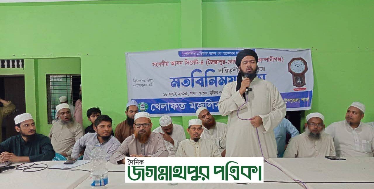 নিজস্ব প্রতিবেদক :: খেলাফত মজলিস সিলেট-৪ (গোয়াইনঘাট-জৈন্তাপুর-কোম্পানীগঞ্জ) আসনের নির্বাহীদের নিয়ে নির্বাচনী পরিকল্পনা প্রণয়ন পরবর্তী এক মতবিনিময় সভা অনুষ্ঠিত হয়েছে। সভায় আগামী