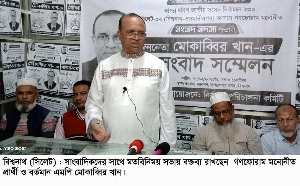 বিশ্বনাথ প্রতিনিধি :: দ্বাদশ জাতীয় সংসদ নির্বাচনে সিলেট-২ (বিশ্বনাথ-ওসমানীনগর) আসনের গণফোরাম মনোনীত প্রার্থী ও সংসদ সদস্য মোকাব্বির খান বলেন, রাজপথে