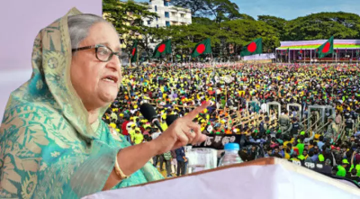 জনগণকে ভোট দিতে দেবে না, এত সাহস কোথায় পায়: সিলেটে শেখ হাসিনা