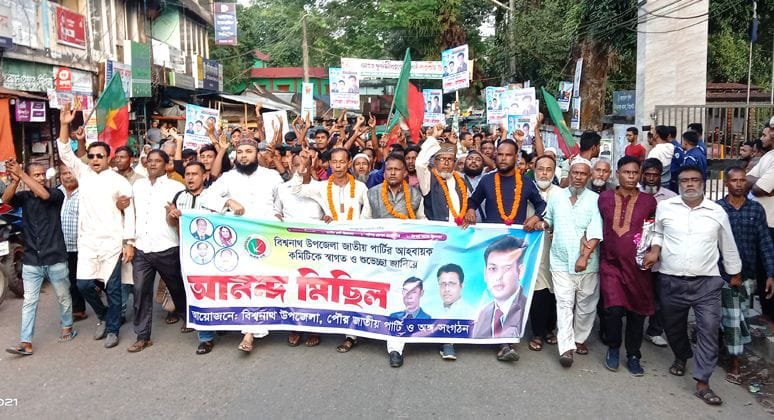 বিশ্বনাথে জাতীয় পার্টির আনন্দ মিছিল