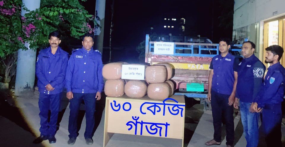 নিজস্ব প্রতিবেদক :: সুনামগঞ্জের শান্তিগঞ্জ থানা পুলিশের বিশেষ অভিযানে ৬০ (ষাট) কেজি গাঁজা উদ্ধার ও গাঁজা পরিবহনে ব্যবহৃত একটি পিকআপ