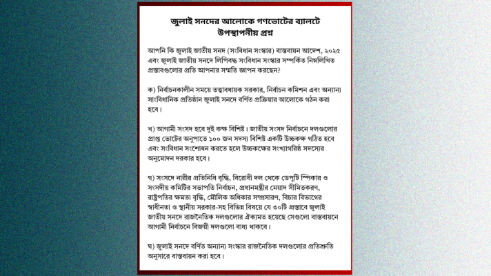 গণভোটের ব্যালটে থাকছে যেসব প্রশ্ন
