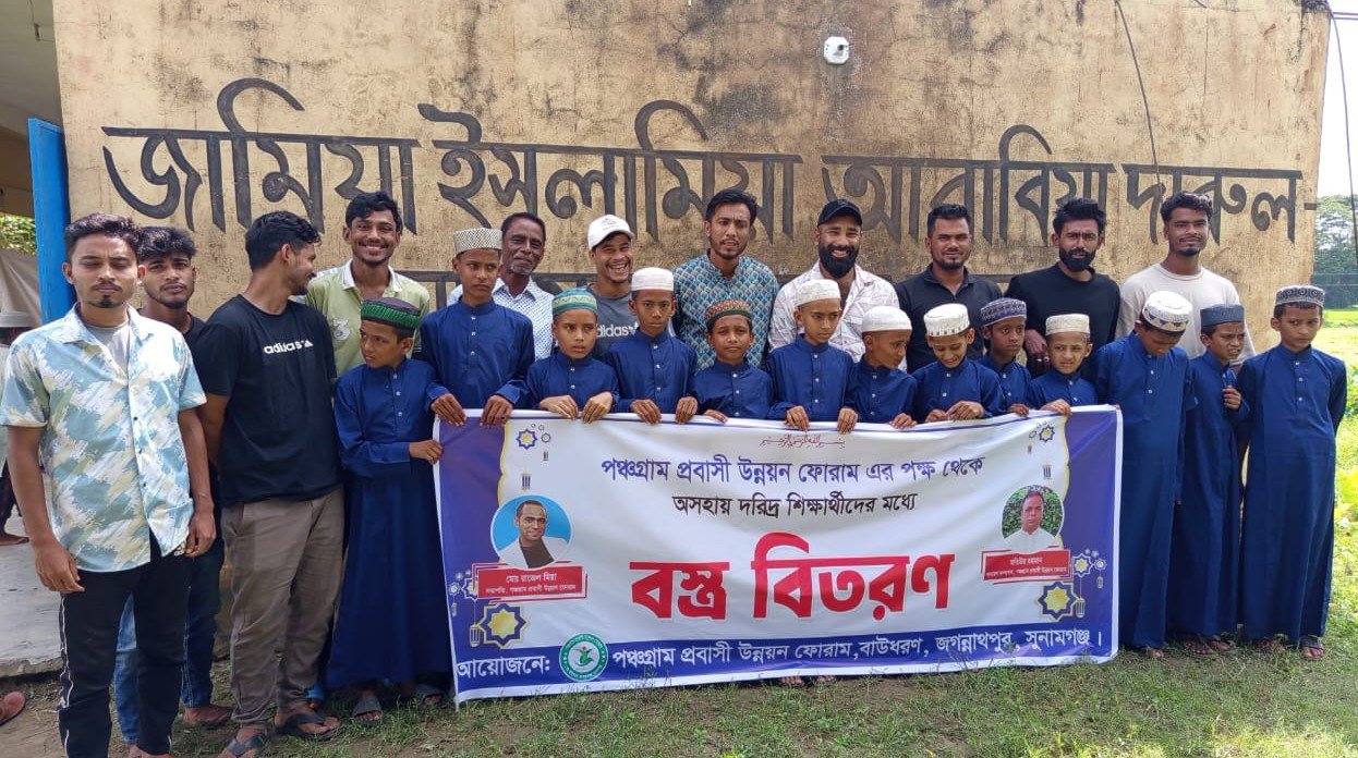 জগন্নাথপুরে পঞ্চগ্রাম প্রবাসী উন্নয়ন ফোরামের পক্ষ থেকে শিক্ষার্থীদের মধ্যে পাঞ্জাবি বিতরণ