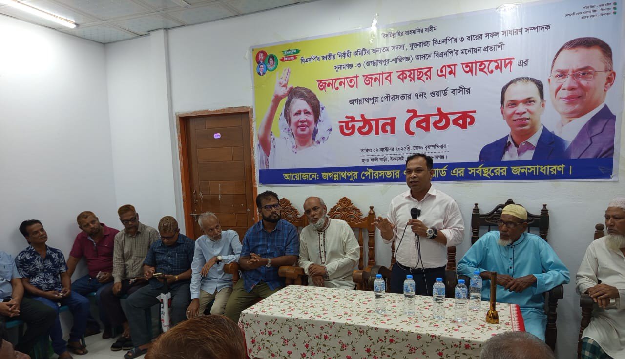 জগন্নাথপুর পৌর এলাকায় জনসাধারণের আয়োজনে কয়ছর এম আহমেদের উঠান বৈঠক