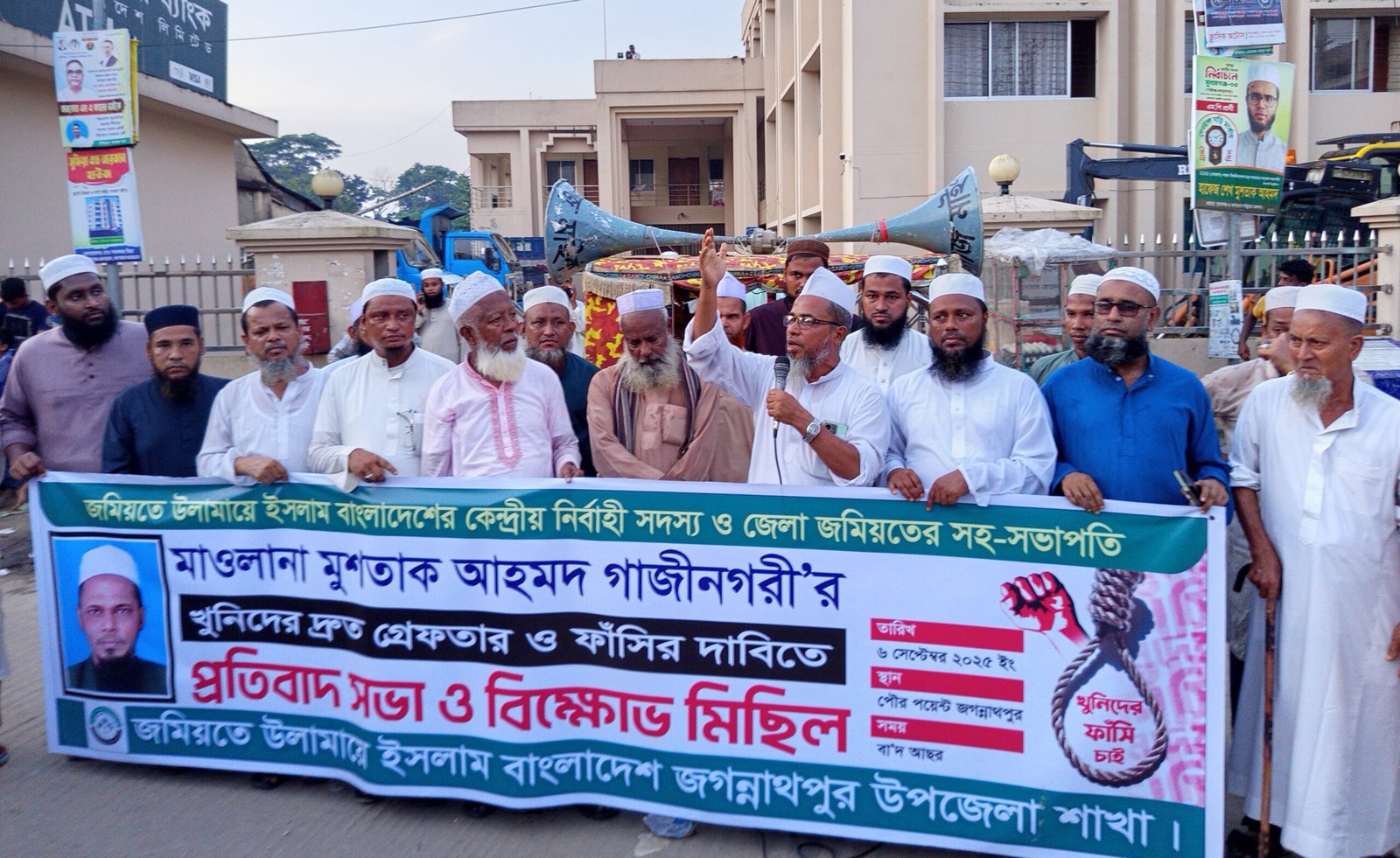 জগন্নাথপুরে জমিয়ত নেতা মুশতাক গাজীনগরীর হত্যাকারীদের দ্রুত গ্রেফতার ও দৃষ্টান্তমূলক শাস্তির দাবিতে বিক্ষোভ মিছিল ও সমাবেশ