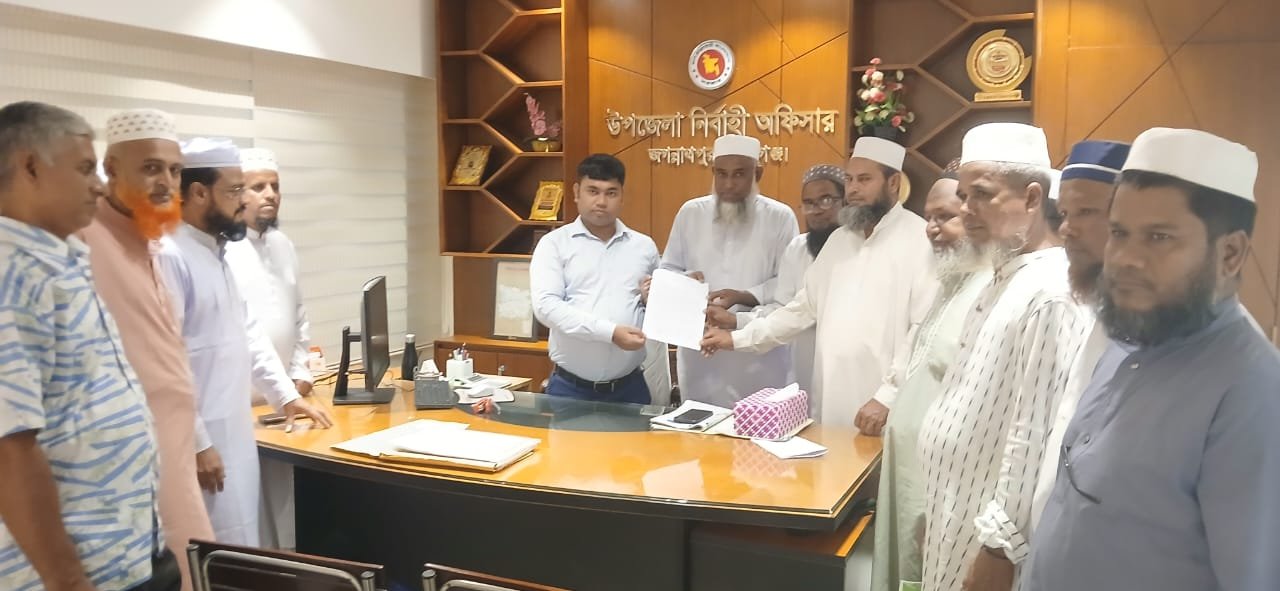 জগন্নাথপুরে মাদ্রাসার অধ্যক্ষের পেশাগত দায়িত্ব পালনে বাধা ও হুমকি প্রদানের বিরুদ্ধে ব্যবস্থা গ্রহণে স্মারকলিপি প্রদান