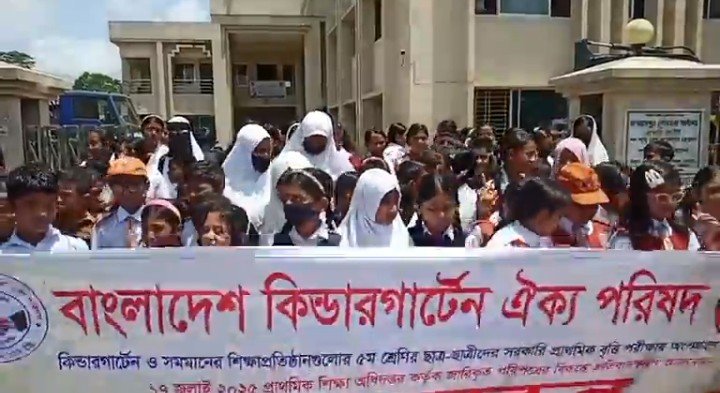 জগন্নাথপুরে কিন্ডারগার্টেন এসোসিয়েশনের বিশাল মানববন্ধন ও স্মারকলিপি প্রদান