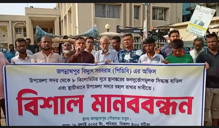 জগন্নাথপুরে বিদ্যুৎ অফিস স্থানান্তরের সিদ্ধান্ত বাতিলের দাবীতে বিশাল মানববন্ধন