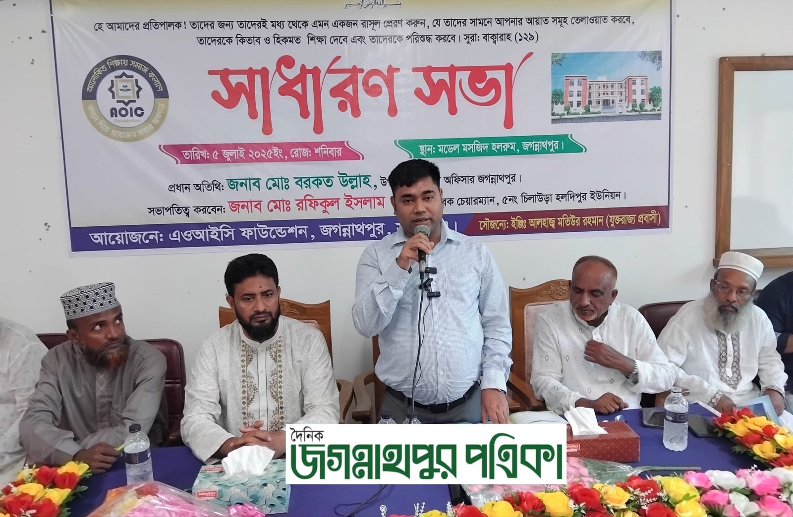 ইয়াকুব মিয়া :: সুনামগঞ্জের জগন্নাথপুরে এওআইসি ফাউন্ডেশনের সাধারণ সভা অনুষ্ঠিত হয়েছে। আজ শনিবার (৫ জুলাই) দুপুরে জগন্নাথপুর মডেল মসজিদ হলরুমে ফাউন্ডেশনের