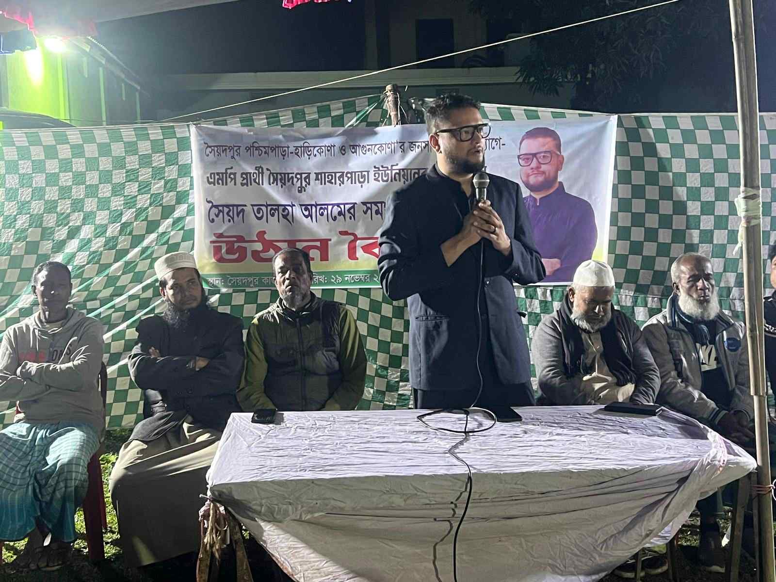 জগন্নাথপুরে আমাদের সন্তান, আমাদের প্রার্থী- তালহা আলমকে এমপি বানাতে সৈয়দপুর-শাহারপাড়া ইউনিয়নে অভূতপূর্ব ঐক্য