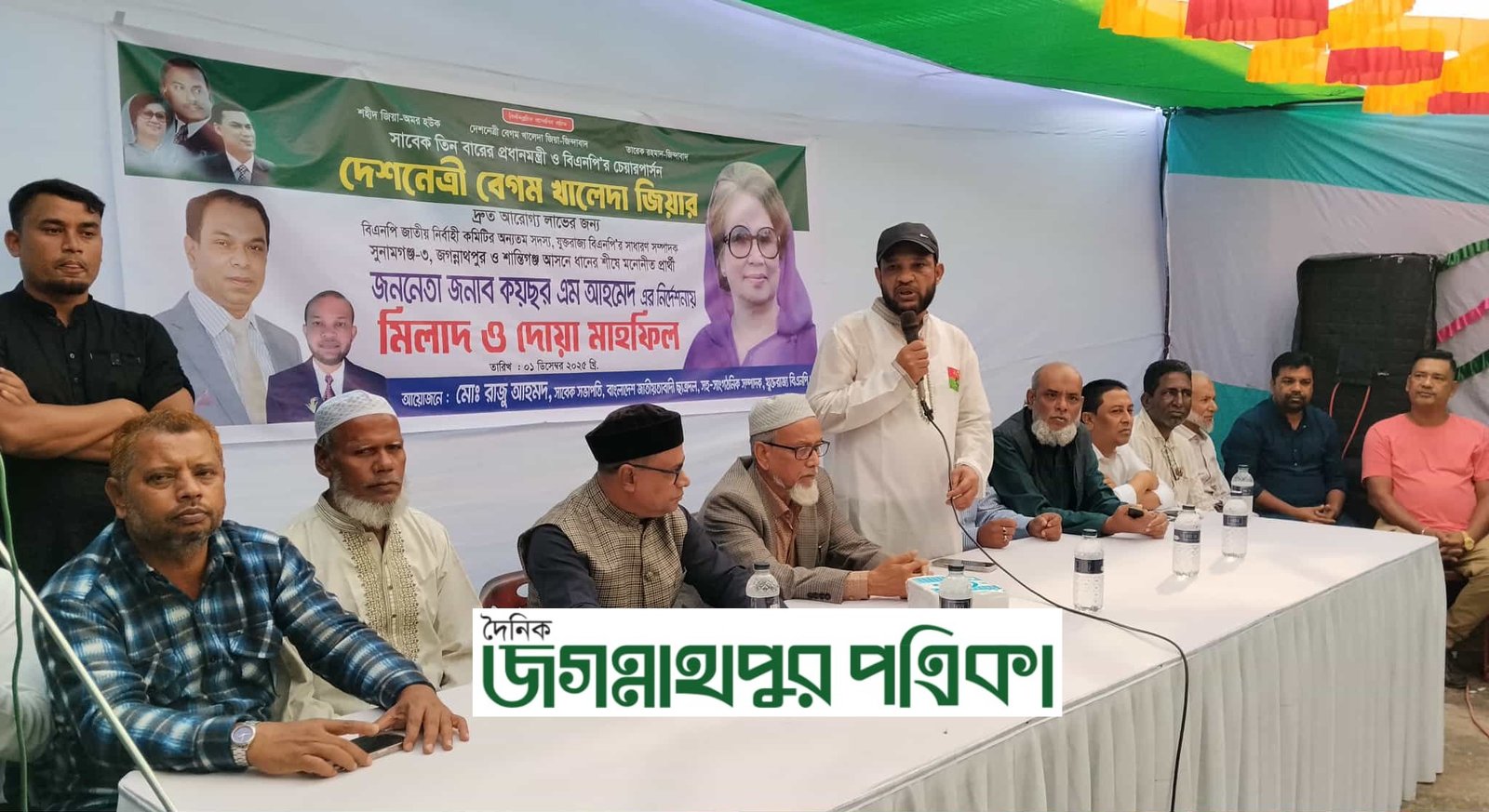 জগন্নাথপুরে খালেদা জিয়ার সুস্থতা কামনায় ছাত্রদলের সাবেক সভাপতি রাজু আহমদের মিলাদ ও দোয়া মাহফিল