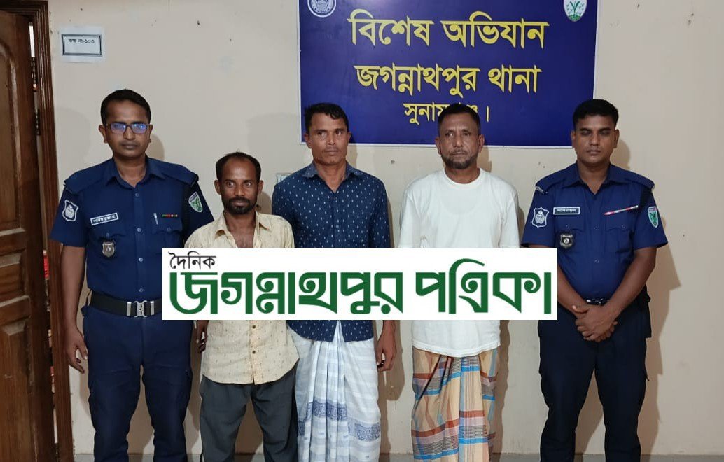 জগন্নাথপুরে সাজাপ্রাপ্ত ও হত্যা মামলার আসামিসহ গ্রেফতার ৩