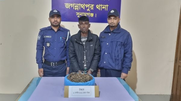 জগন্নাথপুরে গাঁজাসহ মাদক ব্যবসায়ী গ্রেফতার