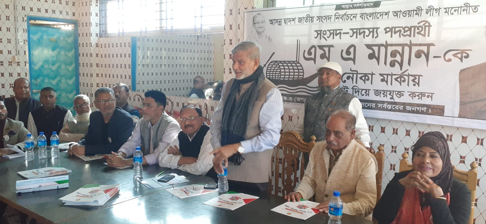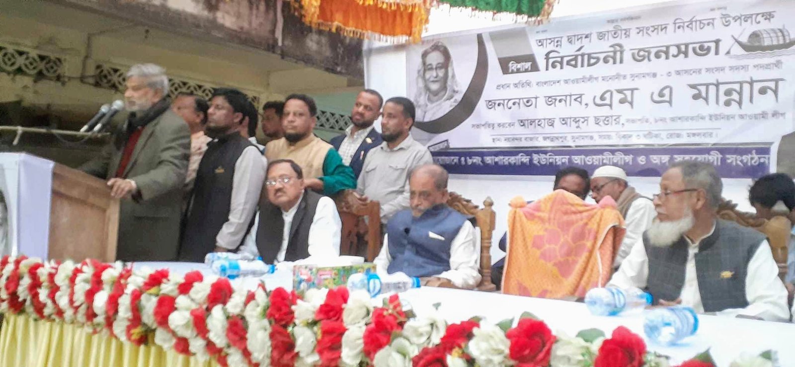জগন্নাথপুরে শাহারপাড়ায় আওয়ামী লীগের উদ্যােগে নির্বাচনী জনসভায় পরিকল্পনামন্ত্রী এম এ মান্নান