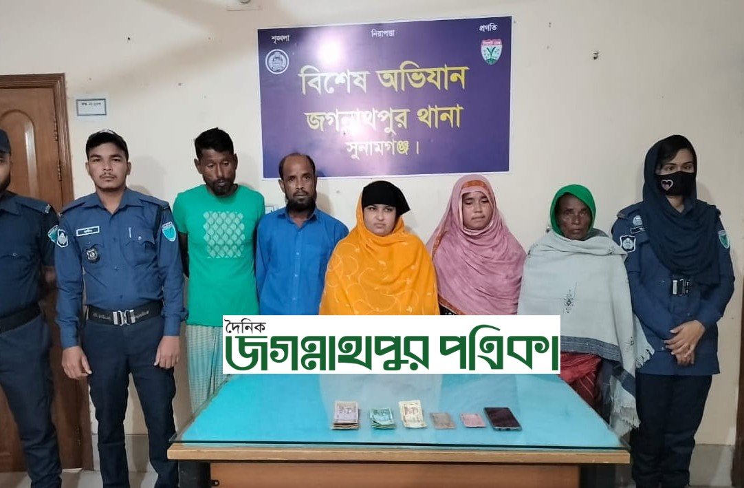 ইয়াকুব মিয়া :: সুনামগঞ্জের জগন্নাথপুর থানার অফিসার ইনচার্জ (ওসি) মোঃ মিজানুর রহমানের নির্দেশে আন্ত.জেলা প্রতারক চক্রের ৫ সদস্যকে গ্রেফতার করেছে
