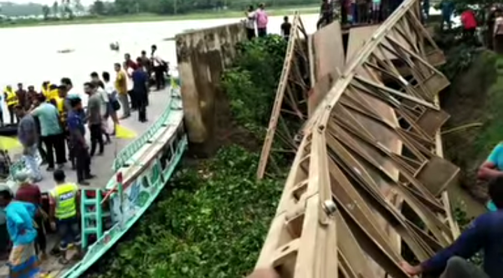জগন্নাথপুরে সেতু ভেঙ্গে ট্রাক পানিতে, চালকসহ নিখোঁজ- ২