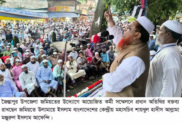 ডেস্ক রিপোর্ট :: সিলেটের জৈন্তাপুর উপজেলা জমিয়তের কর্মি সম্মেলনে জমিয়তে উলামায়ে ইসলাম বাংলাদেশের কেন্দ্রীয় মহাসচিব শায়খুল হাদীস মাওলানা মঞ্জুরুল ইসলাম