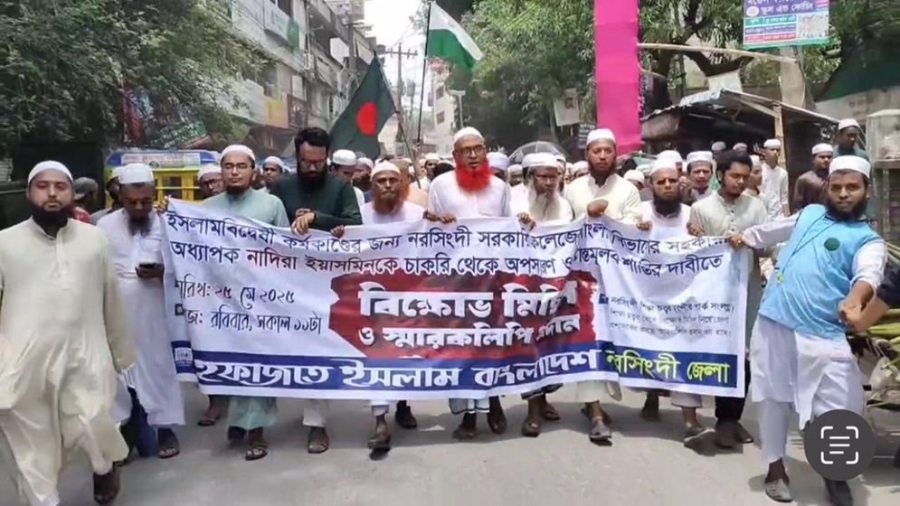 ডেস্ক রিপোর্ট :: ইসলাম বিদ্বেষী কর্মকাণ্ডের জন্য নরসিংদী সরকারি কলেজের বাংলা বিভাগের সহকারী অধ্যাপক নাদিরা ইয়াসমিনকে অপসারণ ও দৃষ্টান্তমূলক শাস্তির দাবিতে
