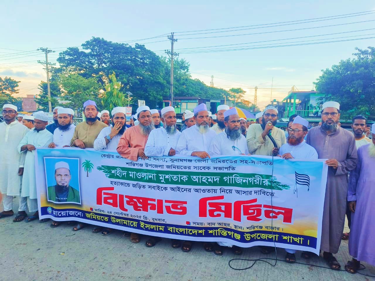 জমিয়ত নেতা মাওঃ মুশতাক গাজীনগরীর হত্যাকান্ডে জড়িত সবাইকে আইনের আওতায় নিয়ে আসার দাবীতে বিক্ষোভ মিছিল