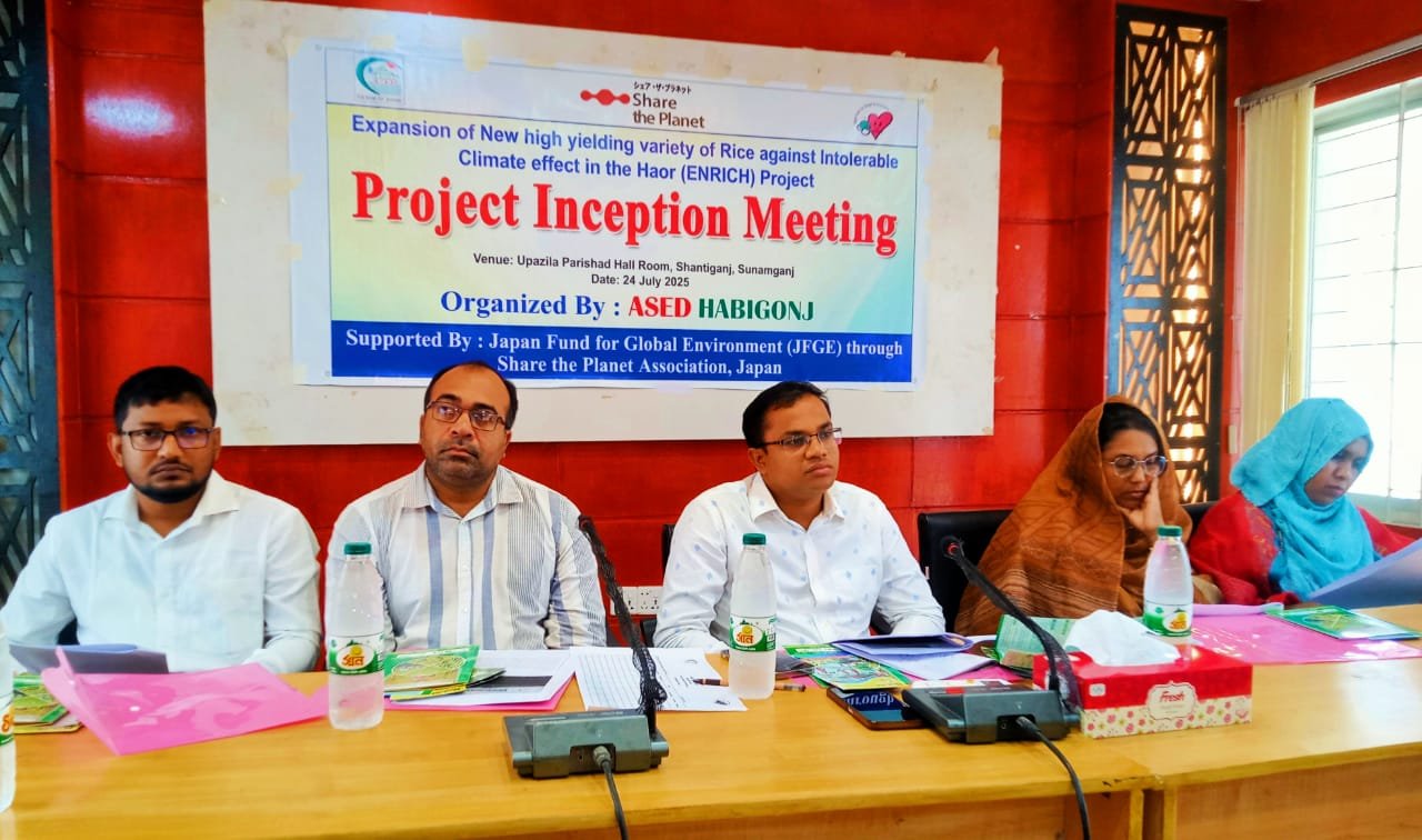 নিজস্ব প্রতিবেদক :: সুনামগঞ্জের শান্তিগঞ্জ উপজেলায় অসহনীয় জলবায়ু প্রভাবের বিরুদ্ধে উচ্চ ফলনশীল বিভিন্ন ধানের সম্প্রসারণ প্রকল্পের ইনসেপশন সভা অনুষ্ঠিত হয়েছে।