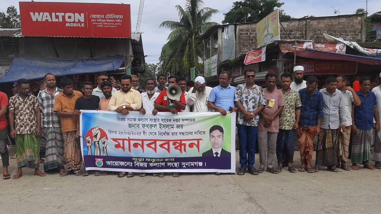 শান্তিগঞ্জে ৫ দিন ধরে ব্যবসায়ী নিখোঁজ, সন্ধান চেয়ে মানববন্ধন