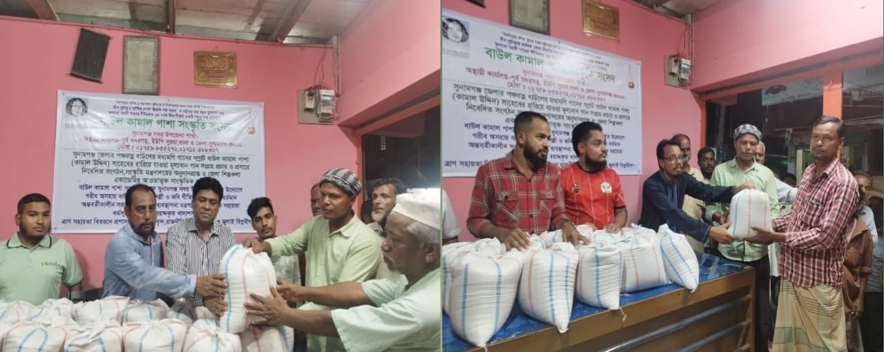 সুনামগঞ্জে বাউল কামাল পাশা সংস্কৃতি সংসদের উদ্যোগে সংস্কৃতিসেবীদের মধ্যে খাদ্যশস্য বিতরন