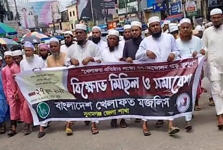 সুনামগঞ্জে বাংলাদেশ খেলাফত মজলিসের।বিক্ষোভ মিছিল ও প্রতিবাদ সমাবেশ