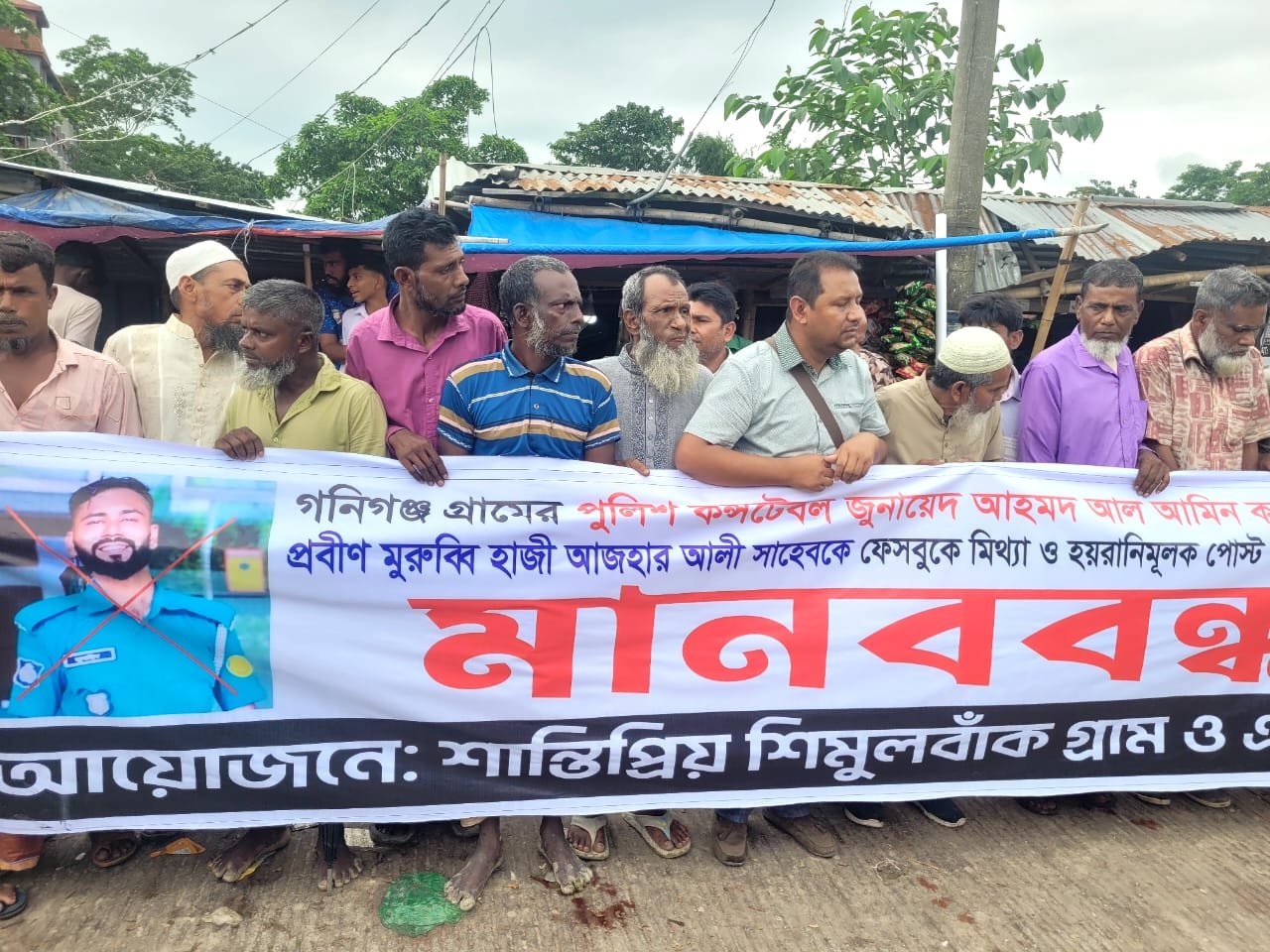 শান্তিগঞ্জে পুলিশ কন্সটেবল কর্তৃক ভিডিও ধারণ করে বৃদ্ধের মানহানি: শাস্তির দাবিতে এলাকাবাসীর মানববন্ধন