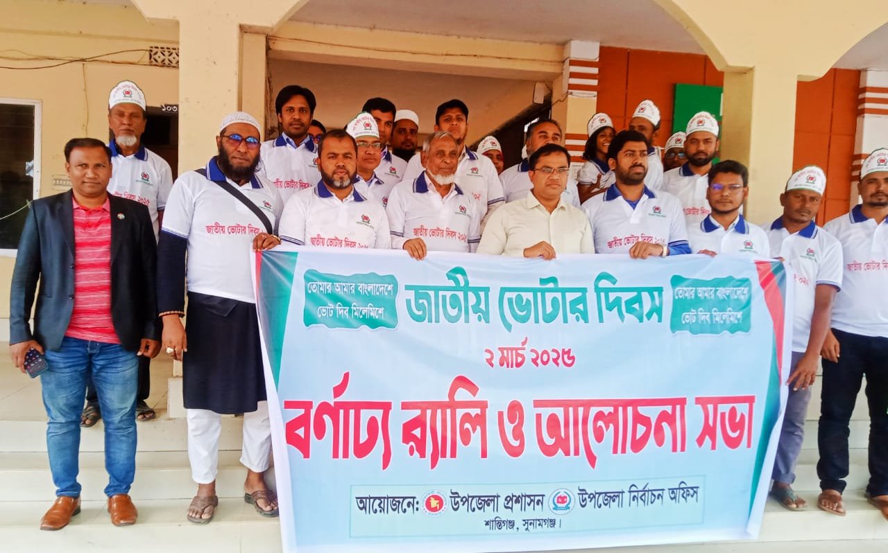 শান্তিগঞ্জে জাতীয় ভোটার দিবস উপলক্ষে বর্ণাঢ্য র্যালি ও আলোচনা সভা