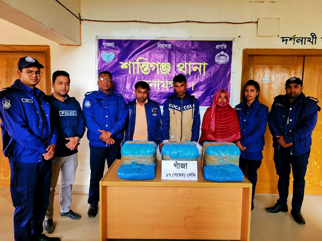 শান্তিগঞ্জে ৩ নারী পুরুষ আটক : ১৭ কেজি গাঁজা ও নোহা গাড়ী উদ্ধার