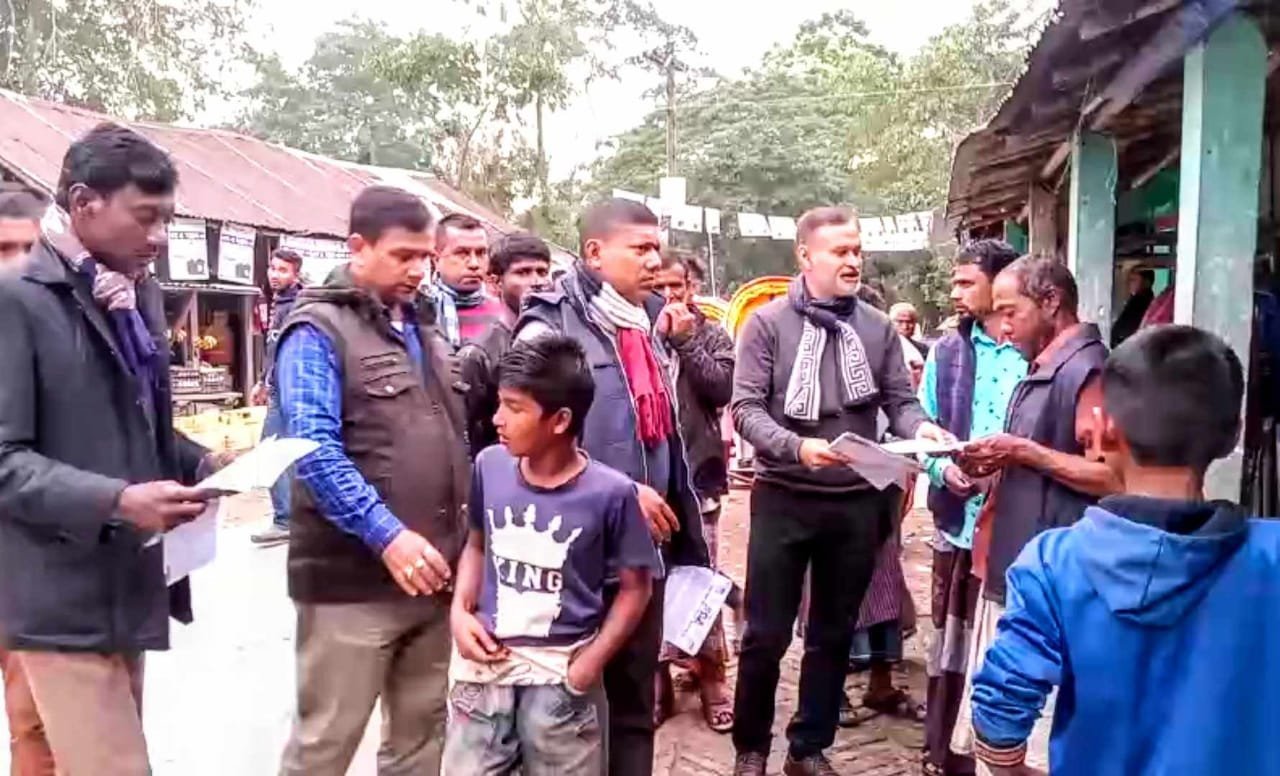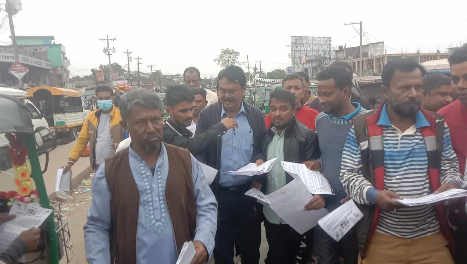 শান্তিগঞ্জে নির্বাচন বর্জন ও অসহযোগ আনদোলনের সমর্থনে লিফলেট বিতরণ