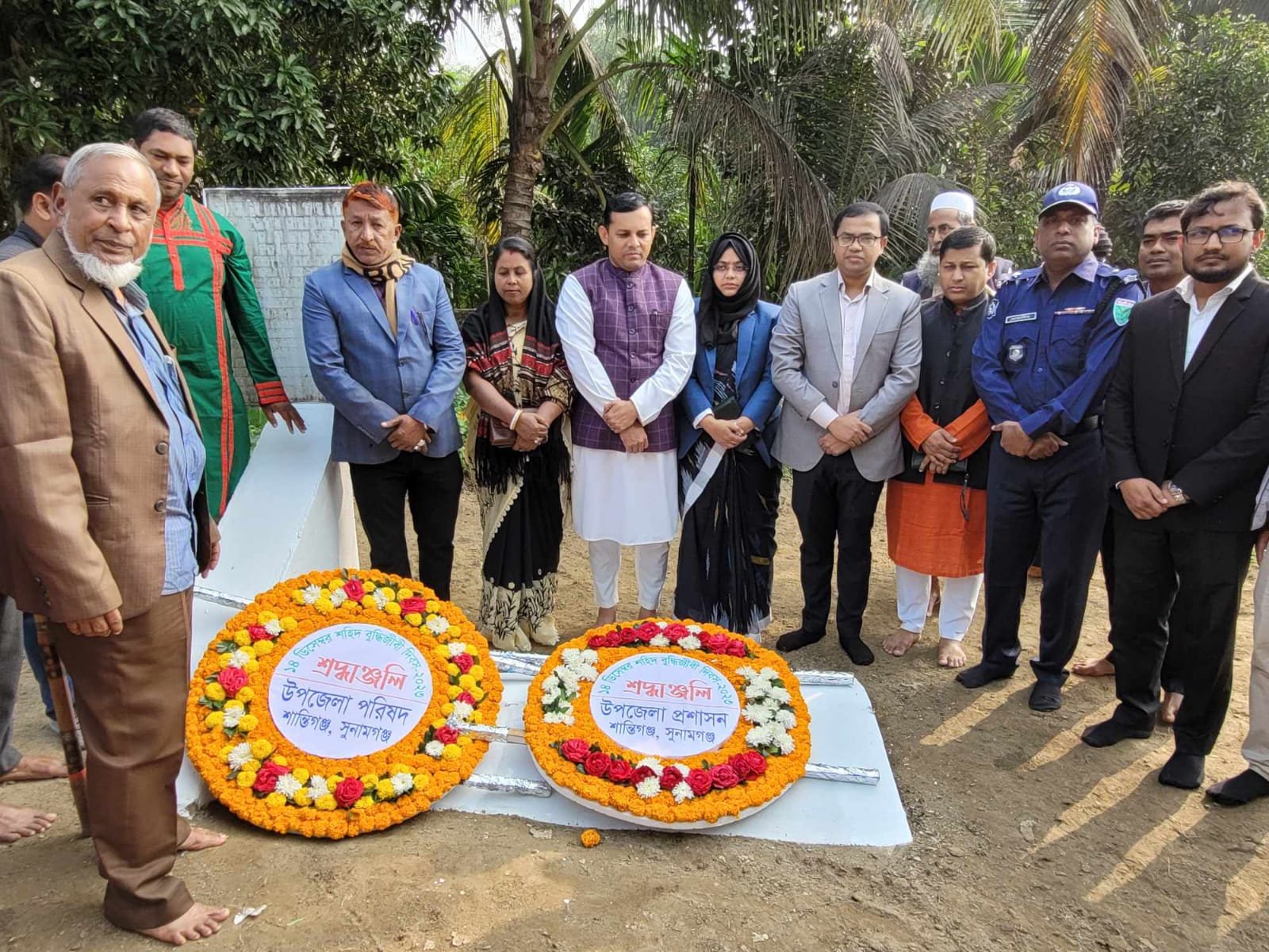শান্তিগঞ্জে শহীদ বুদ্ধিজীবি দিবস উপলক্ষে শহীদ তালেব উদ্দিন ও কৃপেন্দ্র দাশের সমাধিতে পুস্পস্তবক অর্পণ
