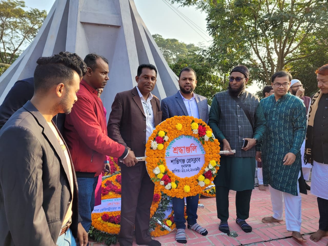 মহান বিজয় দিবস উপলক্ষে শান্তিগঞ্জ প্রেসক্লাবে নেতৃবৃন্দের পুষ্পস্তবক অর্পণ