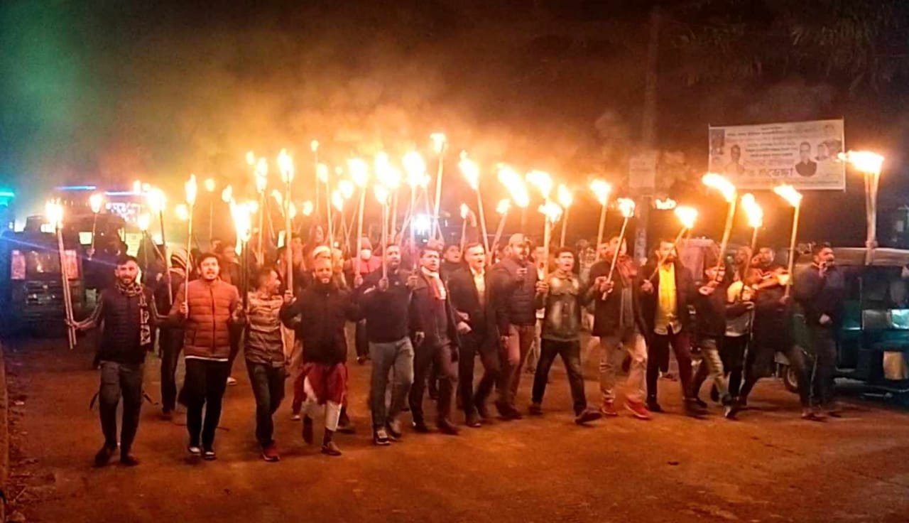 হরতাল সমর্থনে শান্তিগঞ্জে বিএনপির মশাল মিছিল
